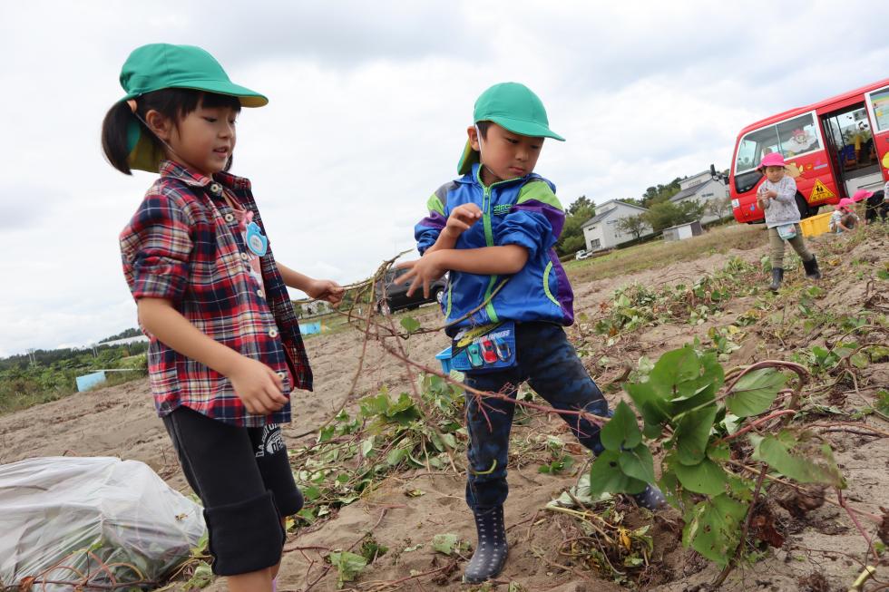 何とかお天気にも恵まれ、年中・年長組のお友だちがいもほりに行ってきました。